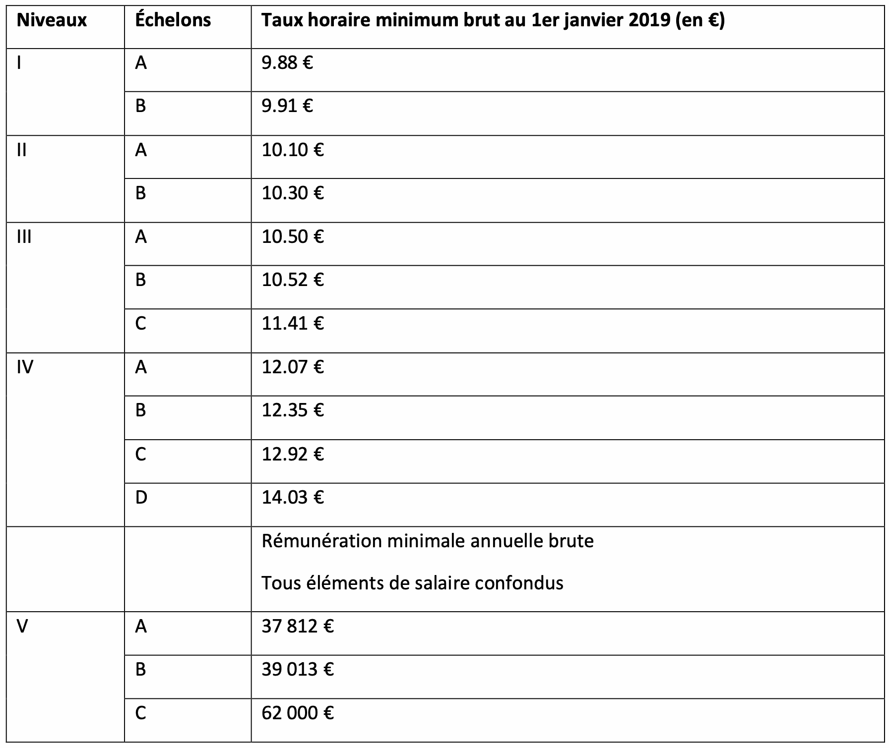 C’est en fonction de ces niveaux et échelons qu’est définie la rémunération pour les salariés. En effet, la convention collective considère chaque couple Niveau-Echelon comme un groupe de rémunération pour lequel elle prévoit un salaire minimal.